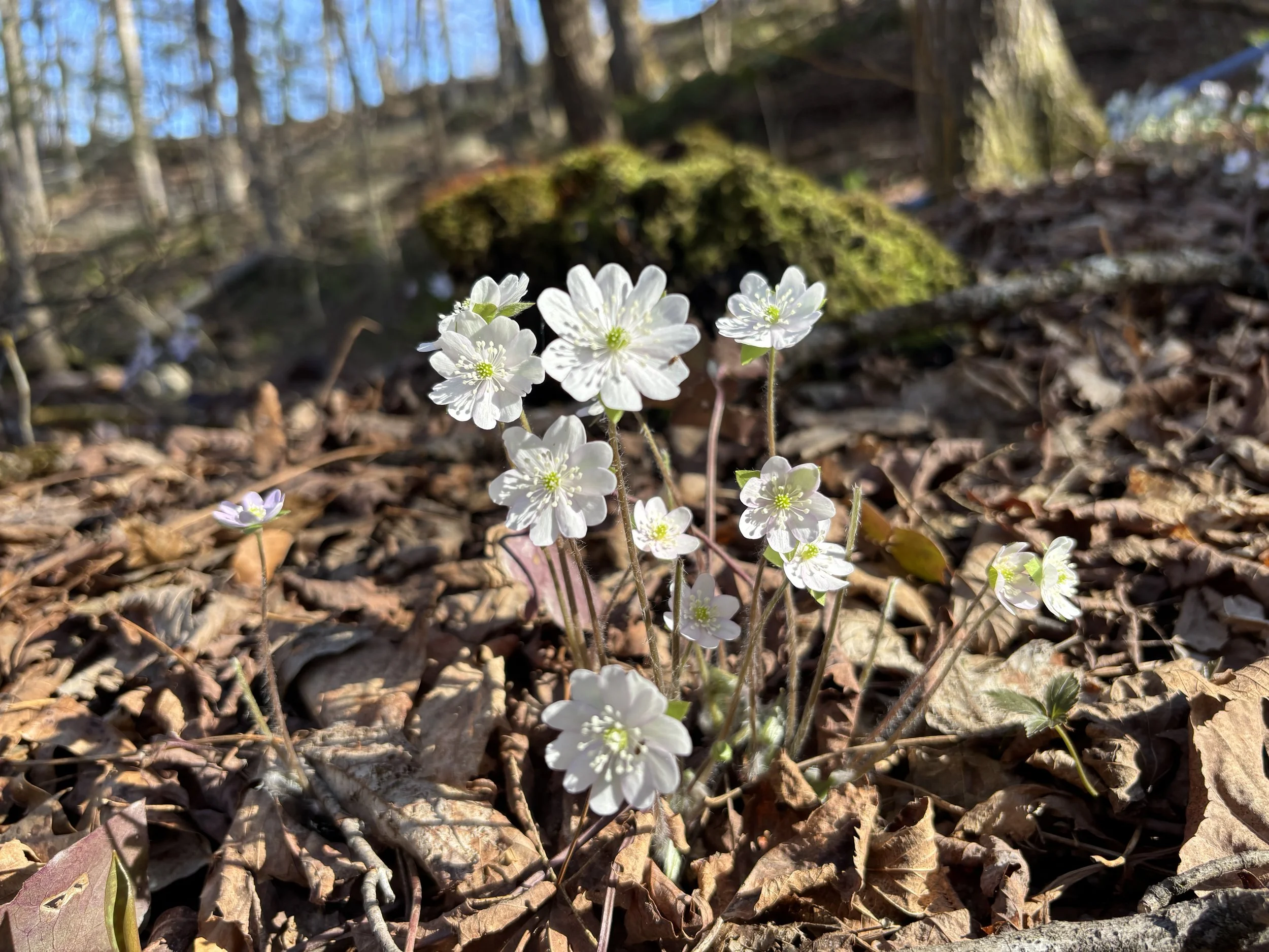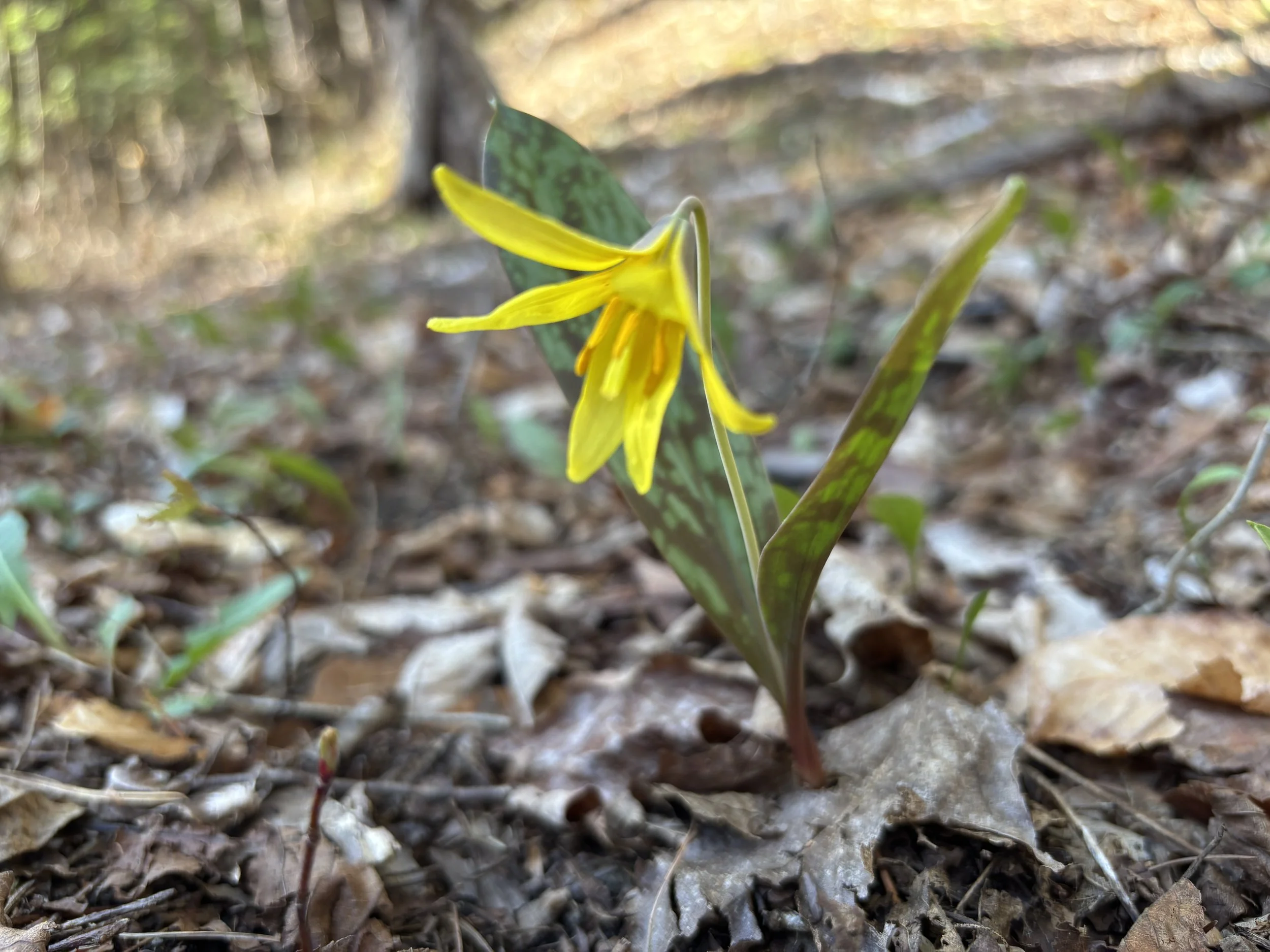 A few days ago the first Louisiana waterthrush returned. Our neighbor’s big patch of hepatica bloomed. Spring peepers are in full force everywhere. Driving back from a poetry reading I took a backroad and stopped to listen to them and watch distant lightning flashing to the north, where I learned the following day a tornado had touched down in the center of the state. Ostrich ferns are up along the brook and a few off our driveway. Bloodroot and trout lily. The magnolias in our yard are blooming sweetly. Sensitive ferns took a day and a half to grow over a foot. Trillium blooms. Purple finches came to the feeder.
